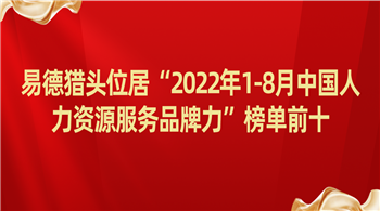 近日,HR价值网发布“2022年1-8月中国人力资源服务品牌力”榜单,易德猎头位居榜单前十。